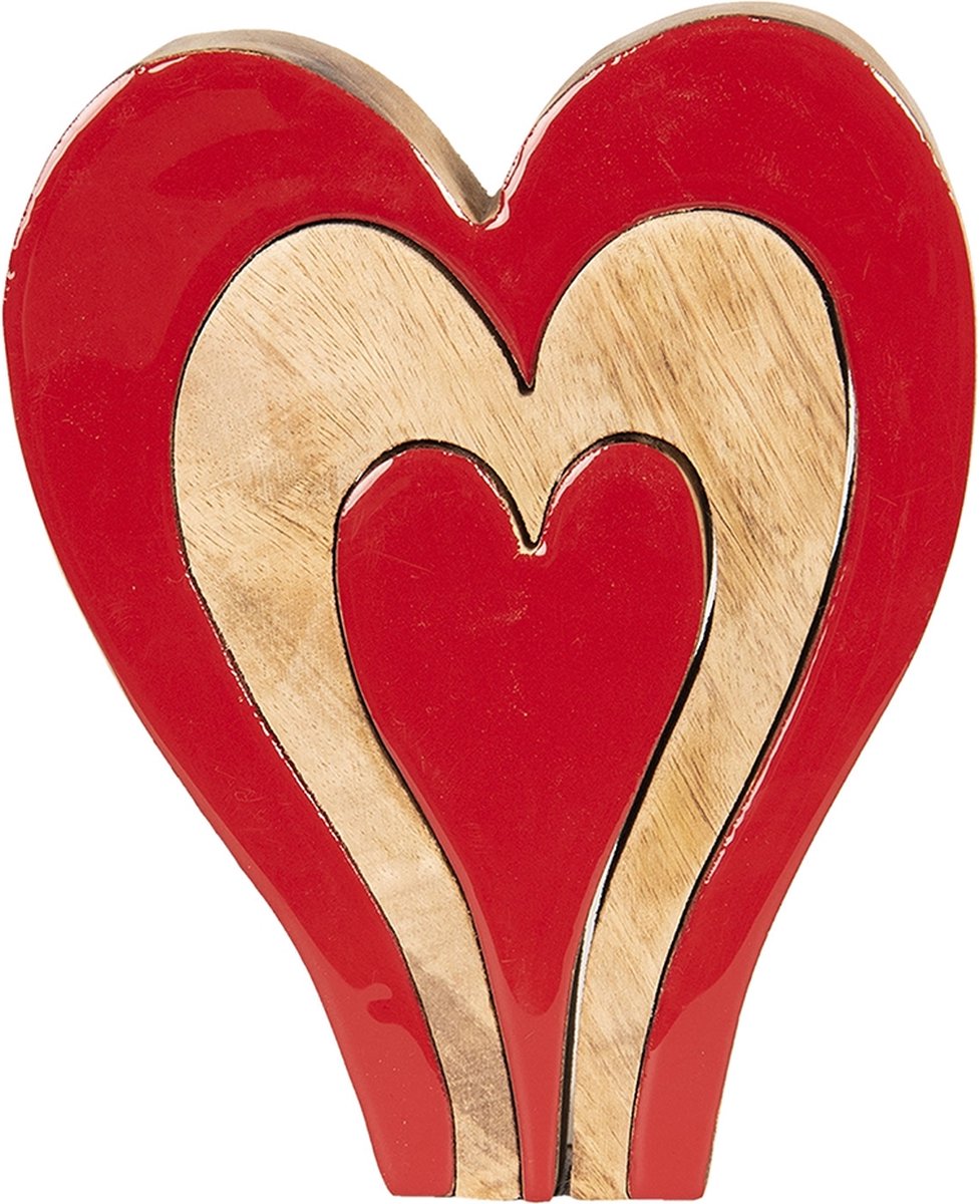 6H177M Clayre & Eef Decoratie Hart 20*16*3 cm Rood Hout Hartvormig Decoratief Figuur Decoratieve Accessoires Woonaccessoires